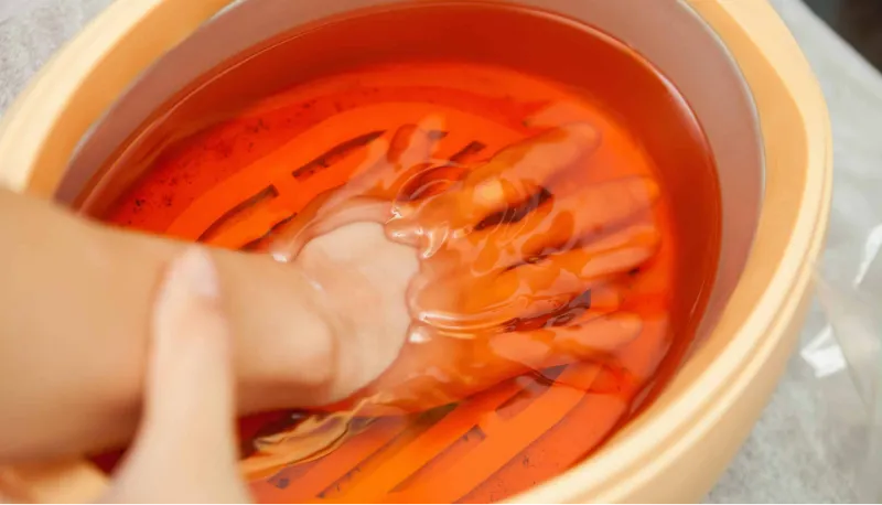 Warm, melted wax applied to joints or skin to soothe stiffness, arthritis pain, and dryness. Enhances circulation and flexibility through gentle heat therapy.